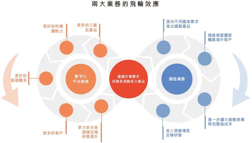 公司的业务模式以数字化交易平台与制造能力的融合为核心,二者共同构成一个自我强化的运营模式。