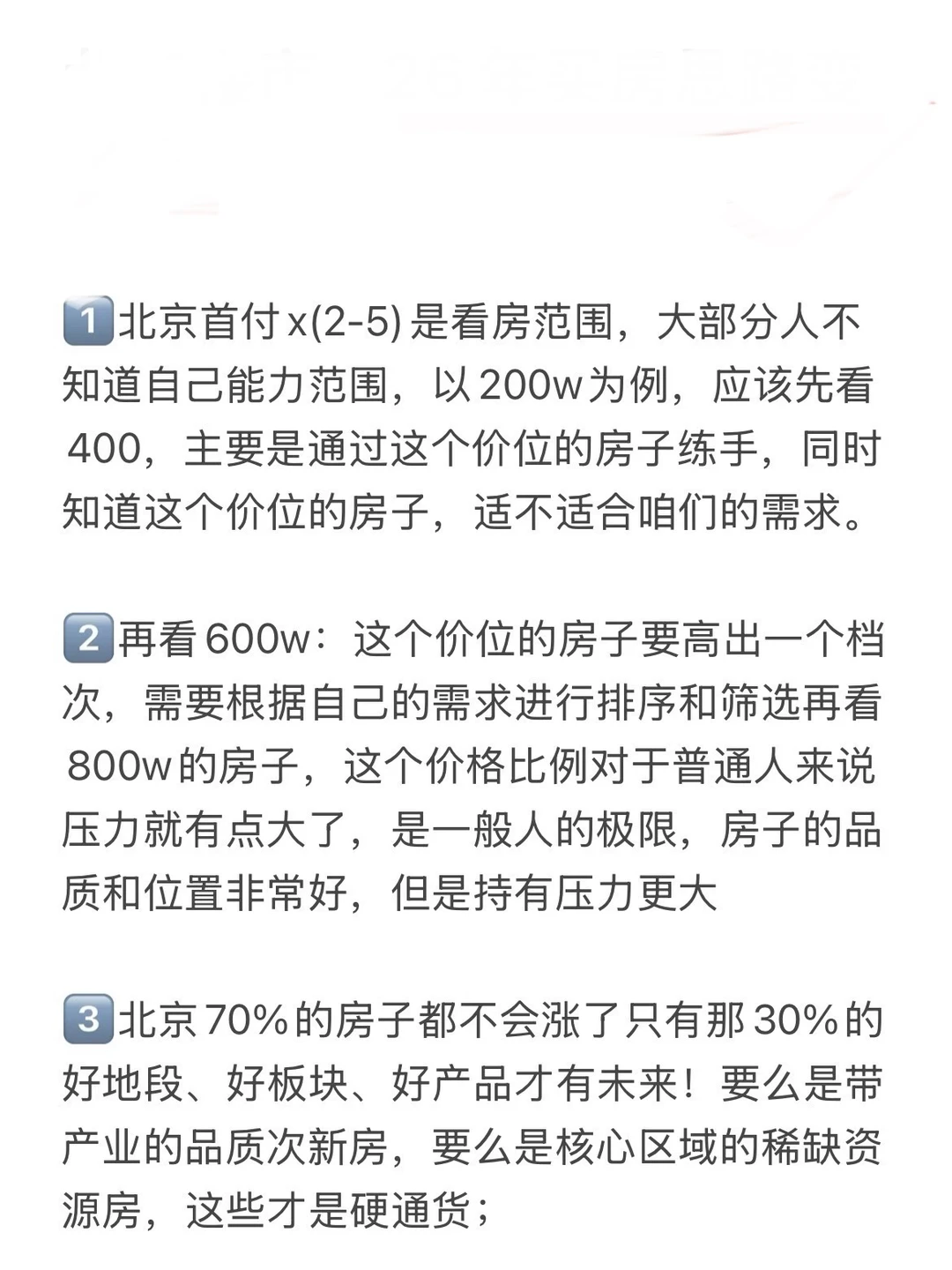3️⃣北京70%的房子都不会涨了只有那30%的好地段、好板块、好产品才有未来!要么是带产业的品质次新房,要么是核心区域的稀缺资源房,这些才是硬通货;