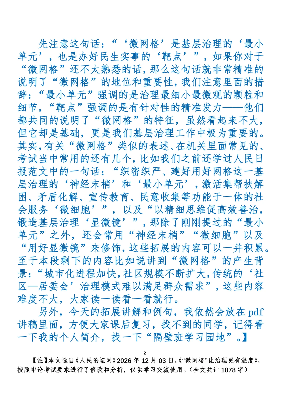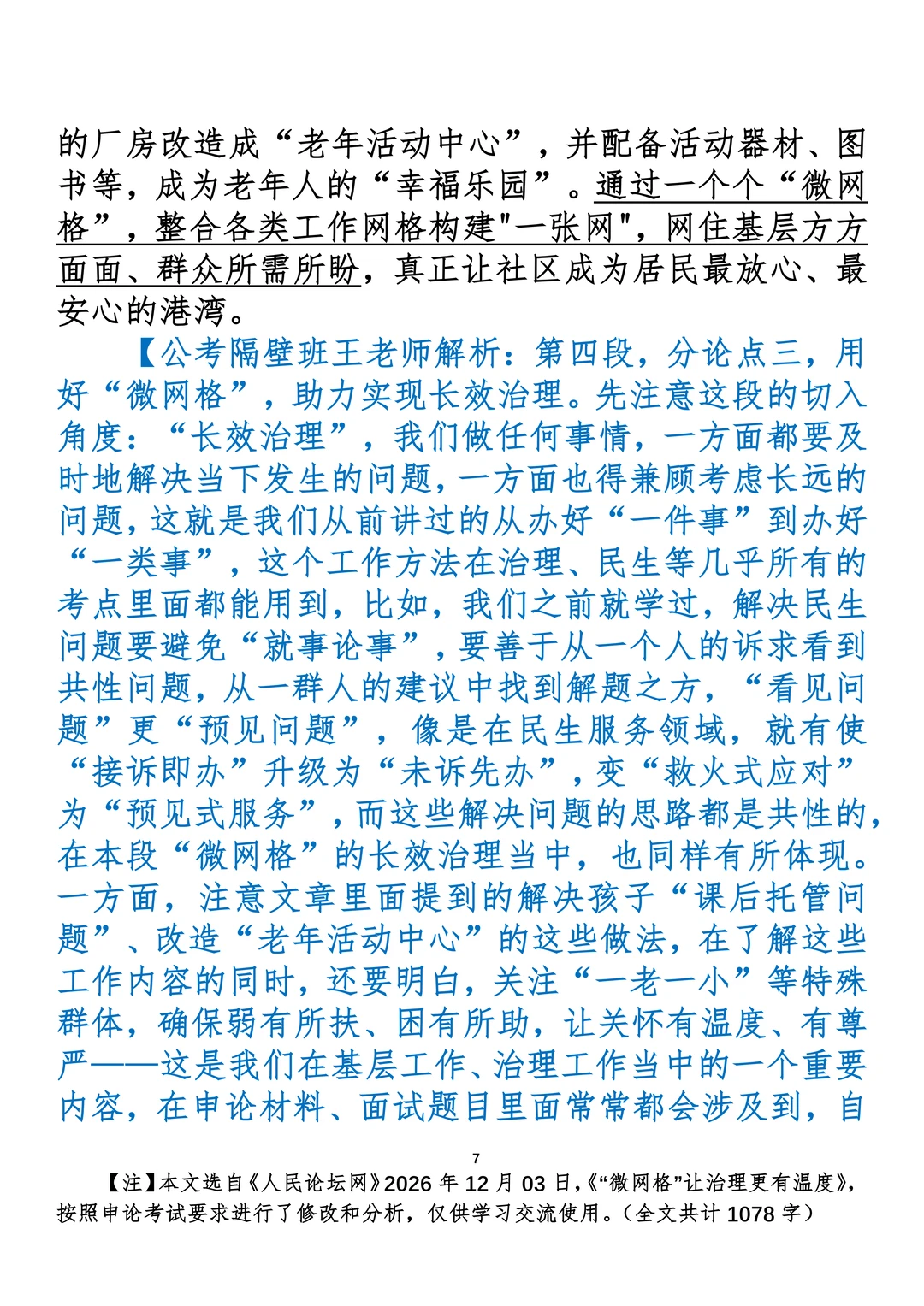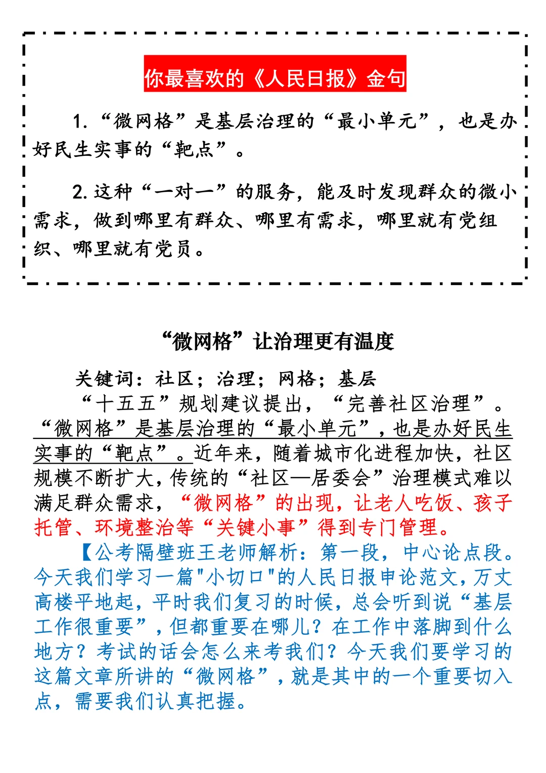 申论范文:“微网格”让治理更有温度