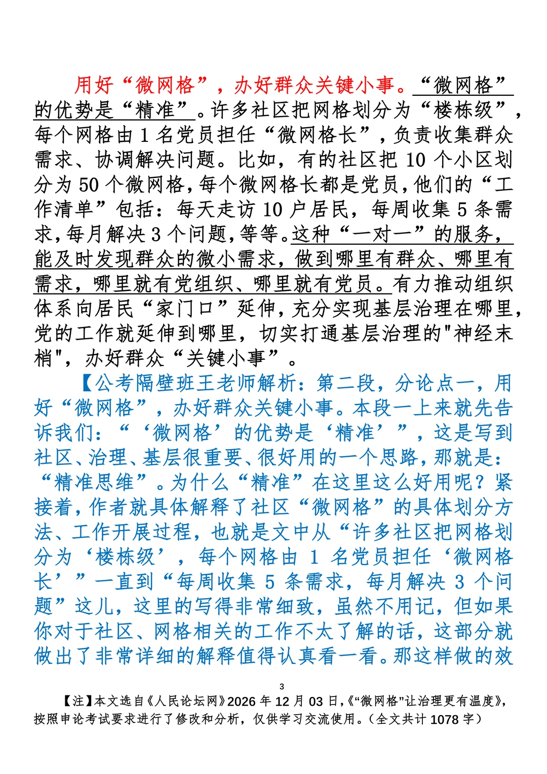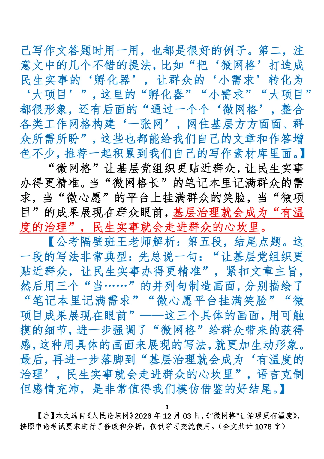 如何抄写:每日抄写文章发在“公考隔壁班王老师”账号,红色字是重点句和结构句,黑色字是正文,蓝色字是解析,大家抄写时不必抄蓝色字。建议先通读全文,做到心中有数再开始抄写,效果会更好。 关于文章:抄写文章来源于人民日报,但每篇文章我都根据申论考试要求进行了修改:一是重写或修改开头、结尾;二是统一段首句句式结构;三是调整段落字数,使文章结构更均衡;四是简化复杂长难句,使之更具可模仿性。每篇文章无论修改多少,都是基于申论考试要求,毫无对人民日报文章品评之意。(此处致敬人民日报)