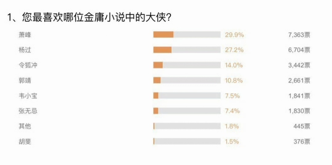 这是19年的投票金书男角:萧峰>杨过>令狐冲>郭靖>韦小宝>张无忌(难以理解张无