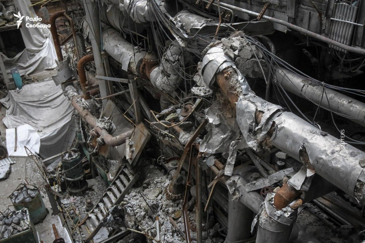 俄罗斯袭击后,乌克兰某热电厂内部的照片。