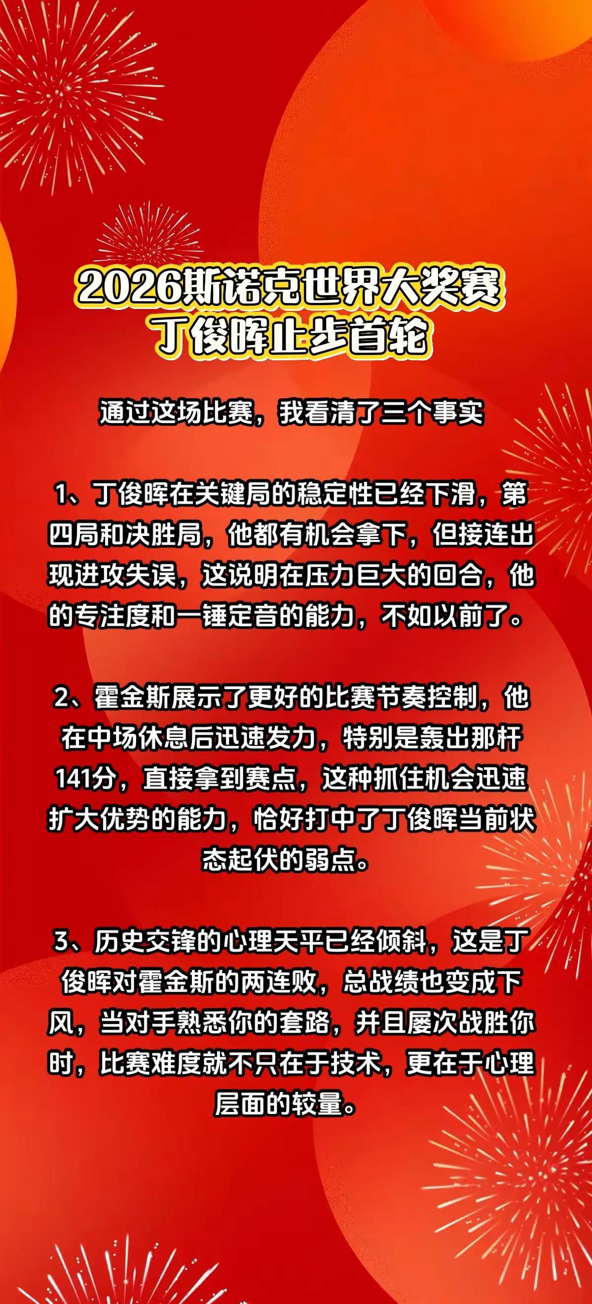 心有余而力不足!丁俊晖已巅峰难再。2:5!丁俊晖竭然止步2026斯诺克世界大奖