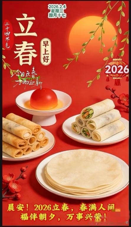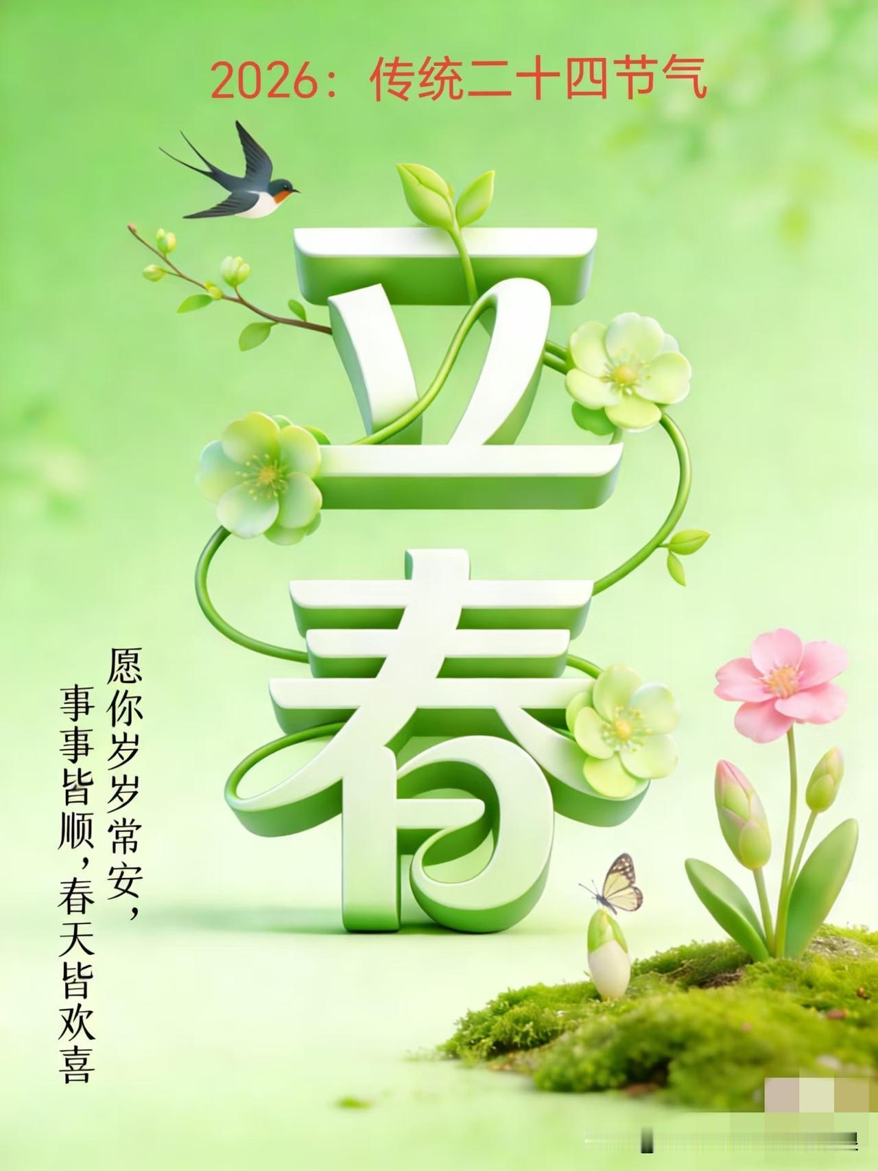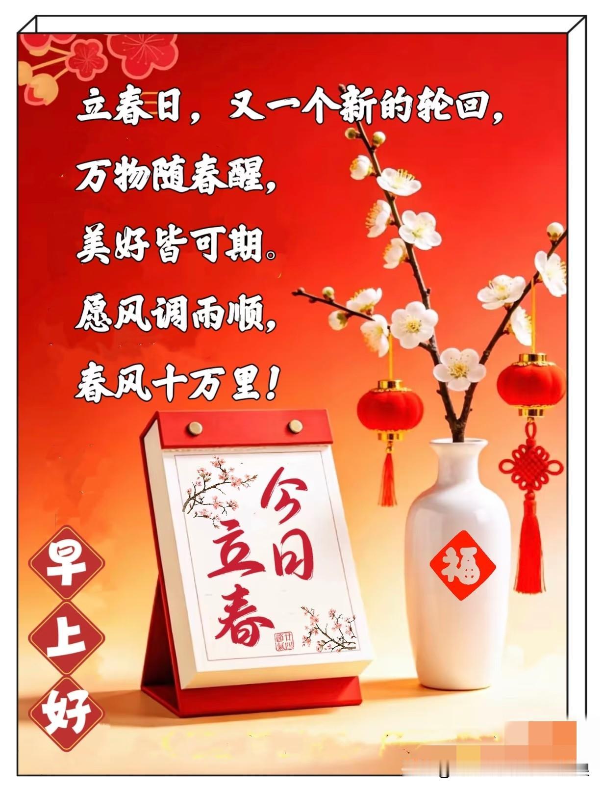 万木生芽是今日,远天归雁拂云飞。立春已至,春信如约,早安,愿美好与你朝夕相伴[玫瑰][玫瑰] 春度春归无限春,今朝方始觉成人。立春日早安,愿你与春同新,岁岁皆欢[比心][比心] 水塘春始波,火候春初热。春日初醒,暖意渐浓,立春早安,愿日子温柔向阳[送自己一朵花][送自己一朵花] 今日立春 万物起始一切更生 今日立春 早安 立春早安