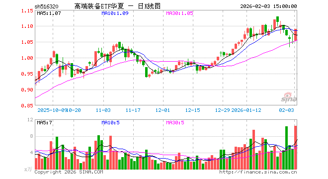 2月3日,高端装备ETF华夏(516320)涨4.11%,成交额1132.12万元。当日份额减少400.00万份,最新份额为8858.93万份,近20个交易日份额增加500.00万份。最新资产净值计算值为9651.80万元。