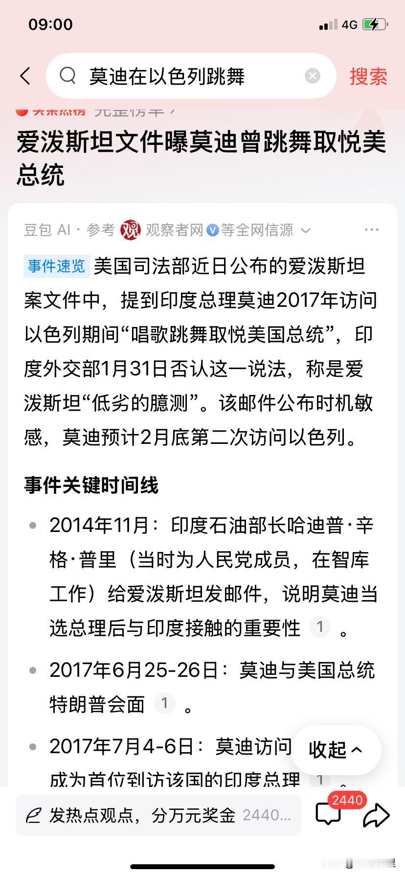两个新闻放在一起看是不是有点门道,前脚美国爱泼斯坦案刚爆出莫迪在以色列唱歌跳舞取