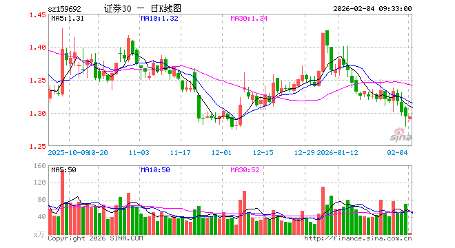 2月4日,证券ETF东财(159692)开盘跌0.31%,报1.290元。证券ETF东财(159692)重仓股方面,中信证券开盘跌0.43%,东方财富跌0.44%,国泰海通跌0.05%,华泰证券跌0.46%,广发证券跌0.61%,招商证券跌0.24%,东方证券跌0.10%,兴业证券跌0.30%,申万宏源跌0.20%,中金公司涨0.17%。