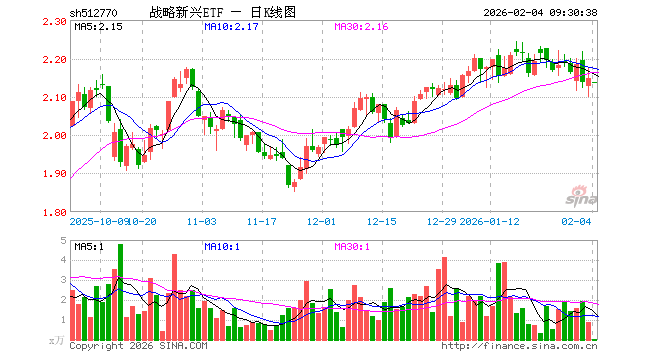 2月4日,战略新兴ETF(512770)开盘跌0.51%,报2.136元。战略新兴ETF(512770)重仓股方面,中际旭创开盘跌3.34%,新易盛跌4.45%,东方财富跌0.44%,寒武纪跌2.48%,立讯精密跌0.86%,阳光电源涨0.08%,胜宏科技跌1.15%,海光信息跌1.30%,恒瑞医药跌0.30%,药明康德跌0.63%。