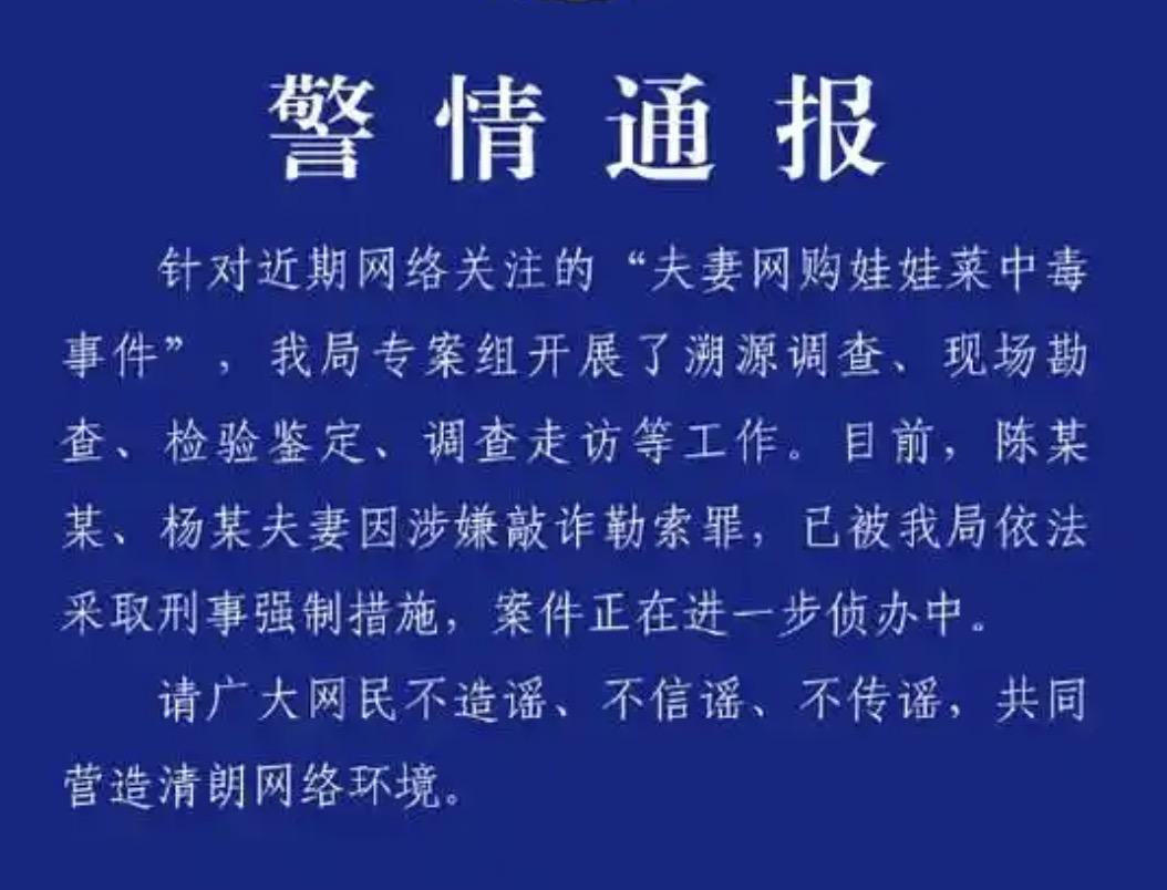 浙江台州天台县网购娃娃菜的这对夫妻真的是狠人! 原本大家都以为他们才是受害者,没想到最终的结果却是,二人为了索要高额的赔偿,自导自演了一出中毒的戏,而且为了让所有人相信,他们竟然还给自己下毒,把自己送进了ICU。说真的一开始的时候,看到当地帽子叔叔的通报时,我都怀疑是不是弄错了。因为我看过媒体对二人的采访,当时的他们看起来很老实,而且还当着记者的面,煞有其事的拿出所谓的证据。并且给自己下毒的事,我也只在电视剧中看到过,现实中还是头一回听说这样的事情。如果换做是我,哪怕是我再缺钱,也干不出这样的事情,因为我是怕疼更怕死。 现在这起事件帽子叔叔蓝底白字通报了,就坐实了这起事件就是他们夫妻二人合谋,那问题就来了,他们将会面临什么样的惩罚?还有涉事商家的损失谁来买单?目前二人已经涉嫌敲诈勒索罪,被帽子叔叔依法刑拘。而根据他们的行为,以及对社会造成的负面影响,3到10年的有期徒刑,基本上是没跑了,如果还有其他的加重情节,10年以上的有期徒刑,也未尝不可能。而与此同时,他们的行为也给商家造成了巨大的损失,而这个损失也得他们来赔偿。 而涉事商家现在只需要,提出刑事附带民事诉讼,并且提交一些索赔依据,比如所造成直接的经济损失,可以提供一下前后销售数据对比,租赁合同等等。再比如间接的经济损失,还可以索要精神损失赔偿。只要能够提供关键的证据,都可以向这对夫妻进行索赔,法院也都是可以支持的。不过一些现实的问题,咱们也得提前考虑到。 涉事商家的店铺销量很高,这段事件关店对他造成了巨额的损失。可涉事夫妻为了骗赔住院已经产生巨大花销,并且他们本身的经济实力也很弱,如果他们再提早转移名下的财产。我的言外之意就是,哪怕法院支持涉事商家的索赔,也判了这对夫妻该赔,可如果他们没有能力来赔偿,到最后商家还是有可能会拿不到该有的赔偿。
