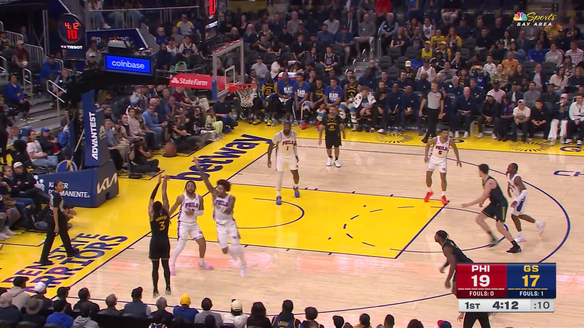 理查德底角三分👌勇士22:23费城76人。76人vs勇士