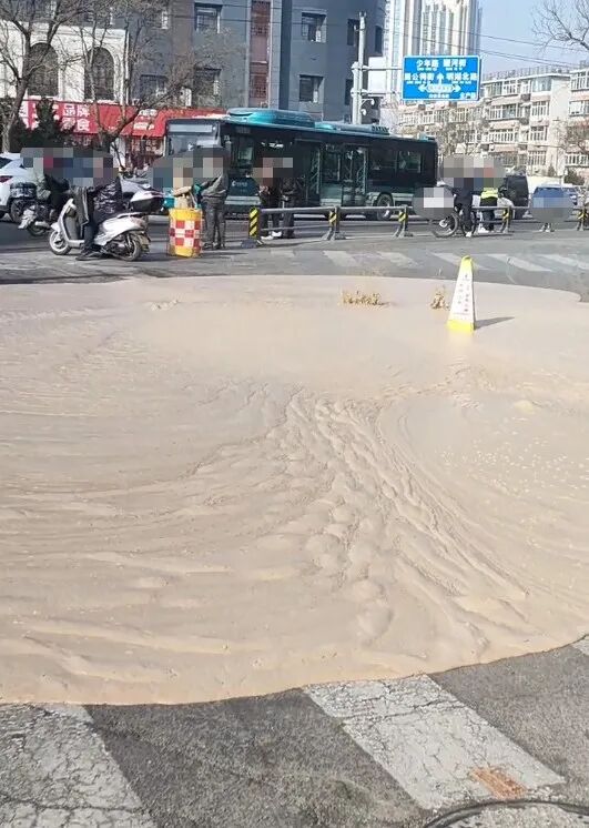 据目击者提供的视频显示,出现泥浆的地方位于大明湖公园西南门的道路上,现场路面已被较大面积的泥浆所覆盖,中心区域还在不断喷出泥浆,不少路人绕路而行。