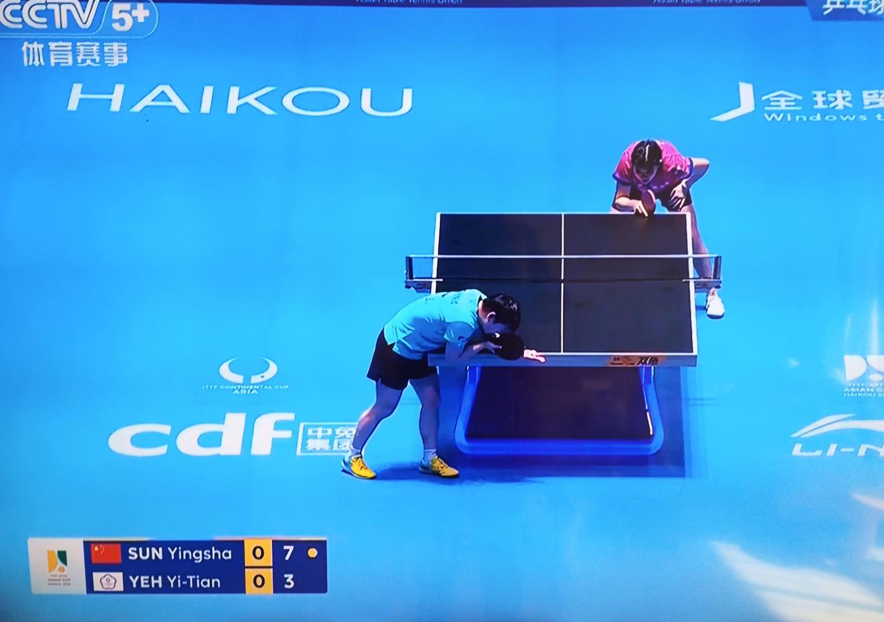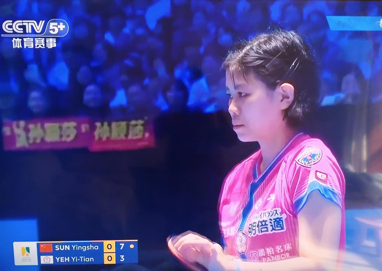 第一局孙颖莎🇨🇳11-8胜了叶伊恬! 孙颖莎的场边指导是国乒女队主教练马琳[赞],叶伊恬的场边指导是庄智渊。 刚刚退出国乒的赵子豪竟然是央视的解说嘉宾,打扮的好帅啊[笑哭]。 这是第35届国际乒联海口亚洲杯女单第一阶段小组赛。 穿着新队服的孙颖莎脸蛋粉嫩粉嫩,萌萌哒,脸上没有表情,非常镇定[笑哭]。 混!第二局莎莎11-3又拿下了!五局三胜制,莎莎再来一局!