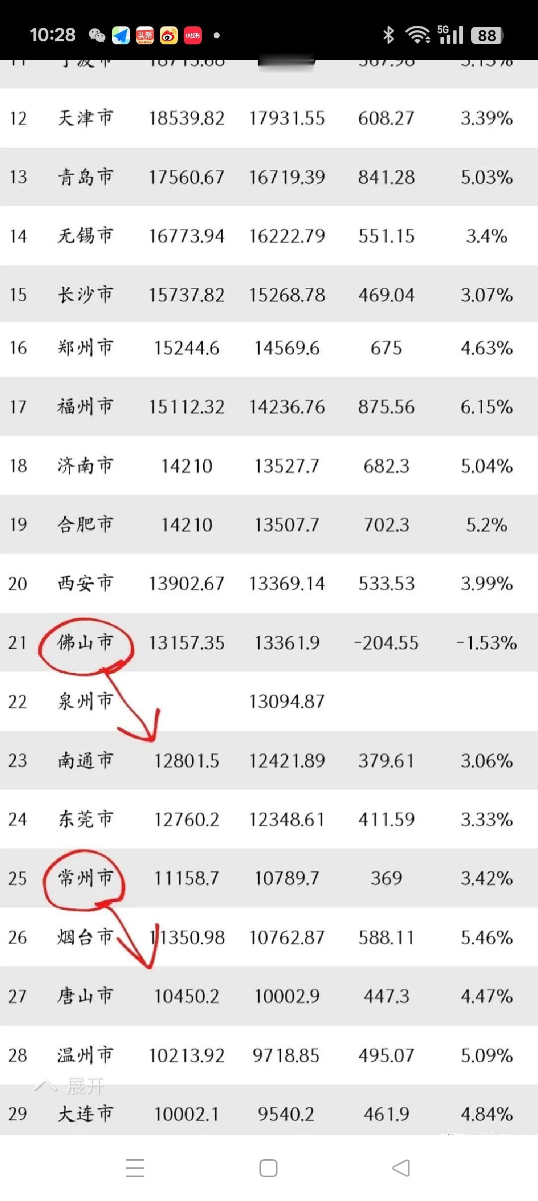 2025年GDP万亿俱乐部出台后的感慨! 2025年GDP万亿俱乐部如约而至。仔细考量一番,颇有几分感慨: 一是传说中的2025年30个城市的俱乐部成员少了徐州一家,徐州的GDP离万亿俱乐部的门槛仅差42.78万元,差不多就是一个普通住宅的售价,实在令人惋惜。希望徐州2026年再加把劲,确保当年迈入万亿俱乐部的行列! 二是佛山成为2025年29个万亿俱乐部成员中唯一负增长的城市,近年来,佛山的发展态势一直不错,但2025年却出现塌陷式的下滑,着实叫人摸不着头脑。值得佛山好好总结一下,以利2026年彻底打个翻身仗! 三是增速下滑的几个城市还真叫人感到不解,29个城市中,增速低于4%的竟是广州、宁波、天津、无锡、长沙、西安、东莞、常州、南通这几个以往响当当的城市,尤其是南通的增速倒数第一,只有3.06%,而增速的急剧下滑的时间段集中在最后的第四季度,全年最终的GDP总量比按前三季度的平均增速测算的全年GDP总量竟少了250亿元,可见第四季度的增速是何其低下,究竟是何原因所致,不得而知。上述增速居后的城市也许应该好好反思总结一下,找出问题症结所在,以便于十五五开好局、起好步!