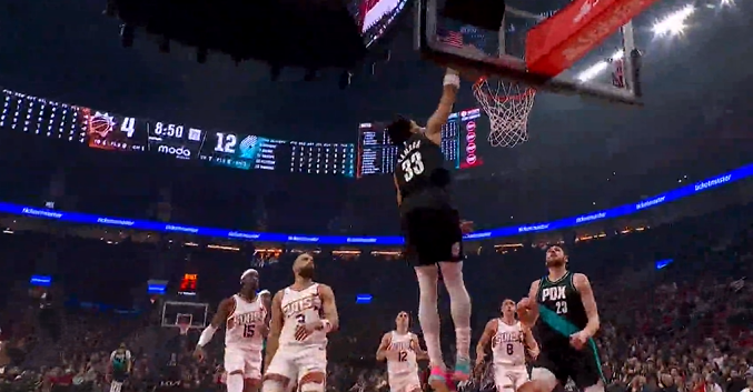比赛第一节,霍勒迪抢断助飞卡马拉劈扣,格兰特再打进开拓者16-4领先。
