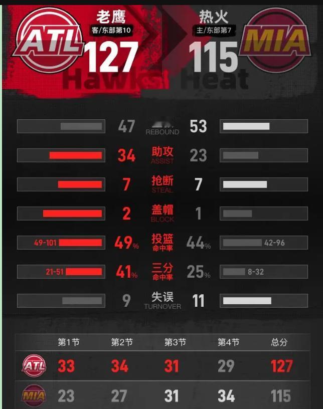 你敢信?热火这阵容寒酸到连发展联盟看了都摇头,居然差点把老鹰掀翻了!名单摊开,巴特勒、希罗全歇菜,这哪是NBA正赛,简直就是“热火训练营对抗赛”。可偏偏就这么一帮替补+新秀,愣是打得老鹰一身冷汗。 老鹰今天赢是赢了,但赢得真心掉价。对面都让了一套首发,你第三节居然还能被追到只差5分?杰伦-约翰逊的三双数据是不错,可这含金量得打多少折扣?防守松得跟清晨马路似的,篮板居然还输给人家“残阵”。这状态去打附加赛,不是送人头吗? 可以说热火是真硬啊!一堆你没听过的名字,哈克斯、拉尔森……上场就玩命。阿德巴约在内线都快累吐了,全队咬着牙撕咬,第三节一波流差点把比赛翻过来。这就是热火的球队文化,哪怕阵容再寒酸,精气神永远不垮。反观老鹰,领先多了就飘,专注度碎一地,这毛病不改走不远。 说实在话,这场球看得人五味杂陈。老鹰赢了现在,可过程看得球迷直挠头;热火输了比赛,却赚足了尊重。可篮球到底还是拼天赋的运动,光靠一口气能撑多久?阿德巴约也不能场场当驴用啊。 最后别提了,老鹰刚好赢12分卡住让分盘……这剧本我服。但热火这群“板凳匪徒”是真的圈粉,他们证明了一件事:在迈阿密,只要你敢拼,就永远有人为你喊那句——“Heat Culture!”约翰逊29+11+11 阿德巴约16+14老鹰胜热火