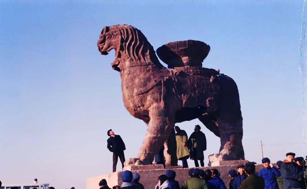 沧州铁狮子几十年前还有嘴巴,加上亭子,困住四肢后,已经面目全非。 还记得黄河大