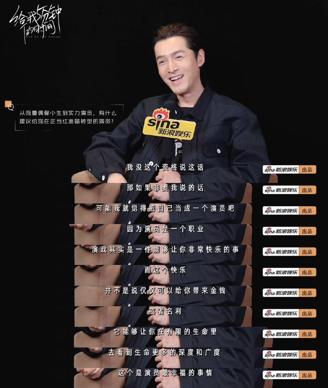 胡歌回应四搭正午阳光 胡歌回应法拉利老了还是法拉利 欢迎做客新浪娱乐原创栏目《给我5分钟的时间》谈及是否会对演戏失去新鲜感,胡歌毫不犹豫的表示肯定他坦言运气好的时候,从头到尾都会在创作的状态里面,但运气没那么好的时候,那么演戏就是自己的一项工作,只要对得起观众和一直付出的工作人员就可以了还有胡歌说在剧组是活宝…更多精彩内容,点击正片观看!电视剧生命树