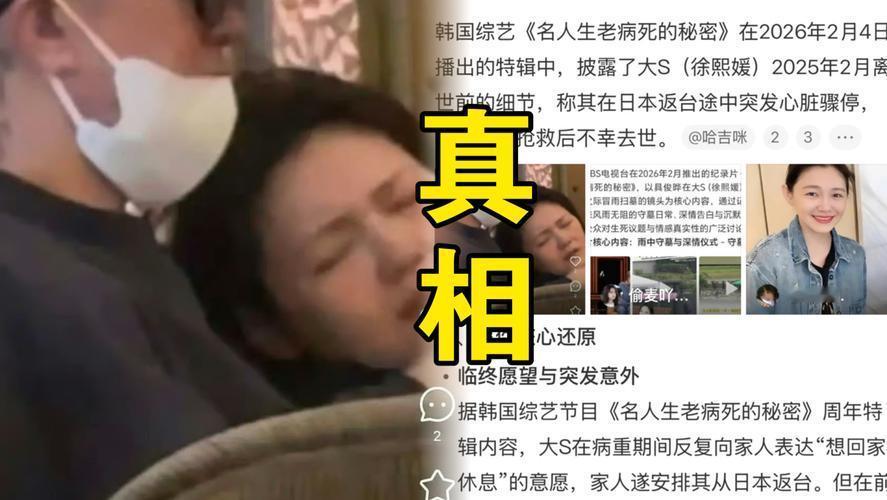 韩媒在大S去世一周年特辑中披露,她在日本旅行时身体不适、高烧不退,坚持要回台休养。家人紧急订票,在前往机场途中,大S突然心脏骤停、失去意识,送医后经14小时全力抢救,最终仍不治离世,年仅48岁。台湾明星大s 大s人生 谢幕