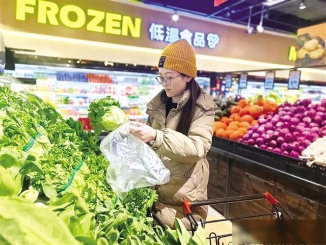 接下来,数十名工作人员麻利地将一筐筐新鲜蔬菜、水果从车上搬运至店中,番茄、辣椒、白菜、黄瓜、香蕉、耙耙柑等热销的蔬果逐一被清点上架,不一会儿,货架上就摆得满满当当。