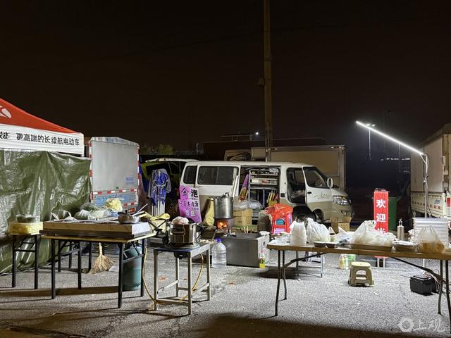 吴女士拉了一辆露营车,因为路面不平,走得磕磕绊绊。露营车里堆满她在滁州狗市采购的物资,有现杀活鱼、酱油和醋、各种小零食,“这边农副产品丰富得不得了,蔬菜特别新鲜,买的炒米糖、花生糖、小米酥都是小时候的味道。”