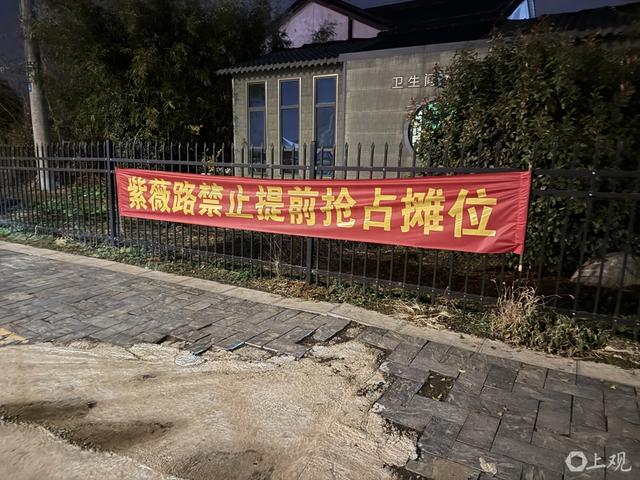 “紫薇路禁止提前抢占摊位”横幅。巩持平摄