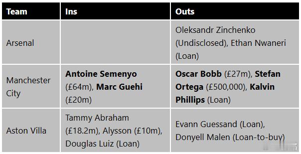 冬窗相当低调,跟联赛的格局也有关系。保级队狼队、伯恩利估计就是放弃了。而利物浦、切尔西、曼联和维拉觉得自己也追不上阿森纳,算了。