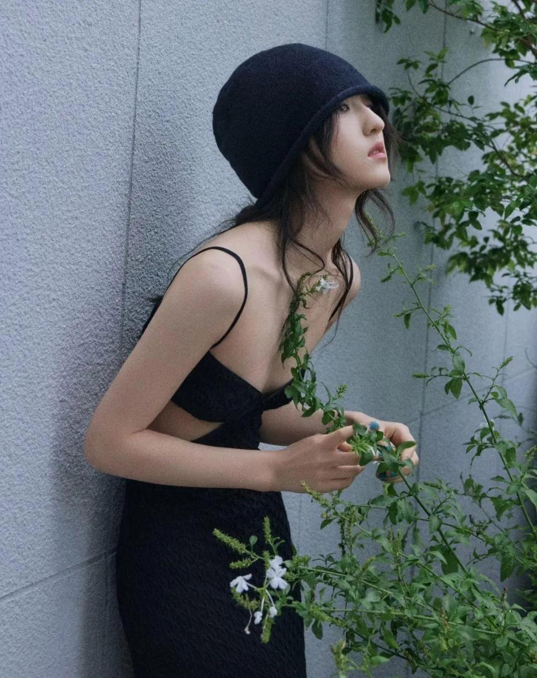 张子枫清冷氛围感直接封神✨ 褪去妹妹稚气,黑色吊带裙又纯又欲,每一帧都美到心巴上~气质绝了! 张子枫 女明星写真