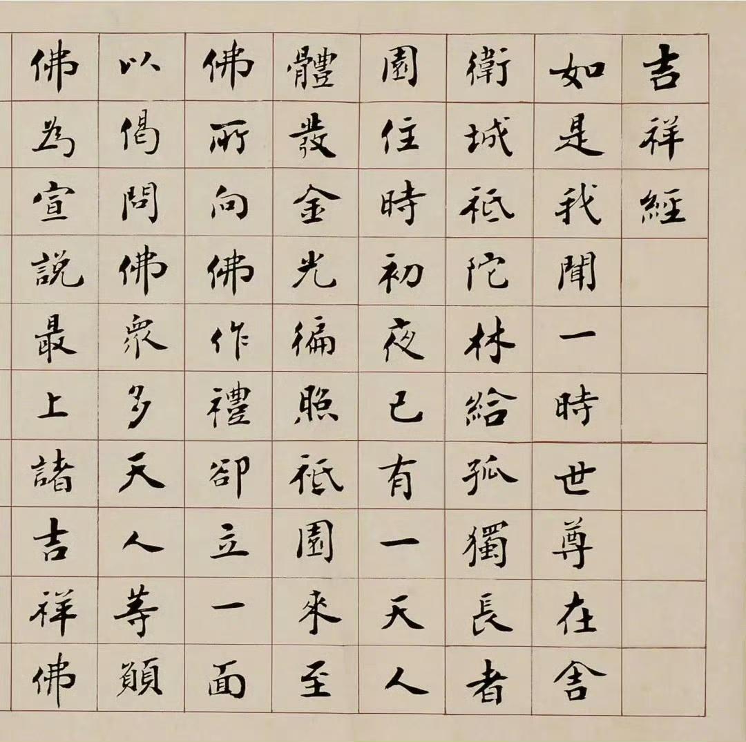 赵朴初的楷书《吉祥经》,字体端庄大气,笔画刚劲有力又不失柔和。每一个字都仿佛蕴含