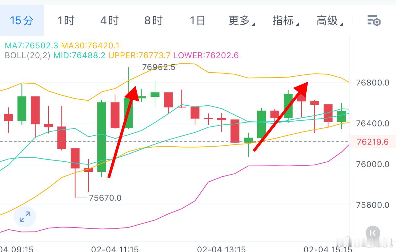 老纪昨晚73500附近多今天3000点各位看得见,以及早间提醒回踩的75500附近也有短线多提醒。