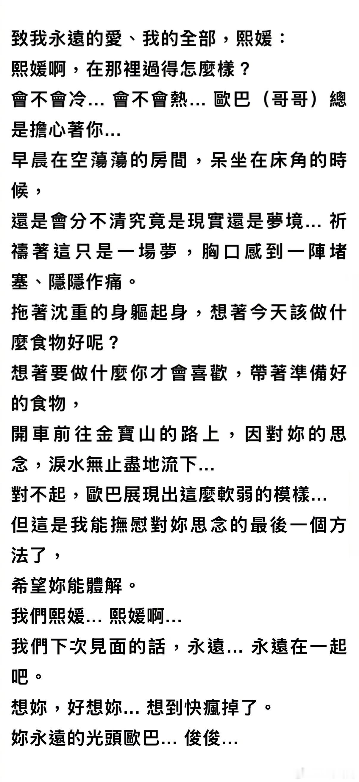 在大S去世一周年时,具俊晔手写信,悼念大S