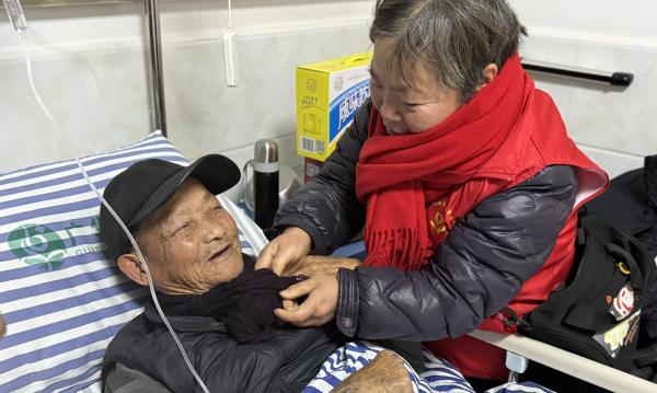 围在床边的舟山养老服务协会志愿者们俯下身,一句句“阿伯”叫得亲切。此刻,窗外的冬日照进病房,落在老人舒展的眉间。