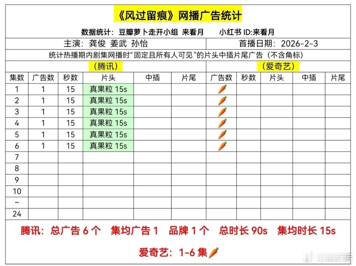 龚俊新剧《风过留痕》双平台连续两天仅1广,爱奇艺6集无广🥕首日云合3.3%,扛