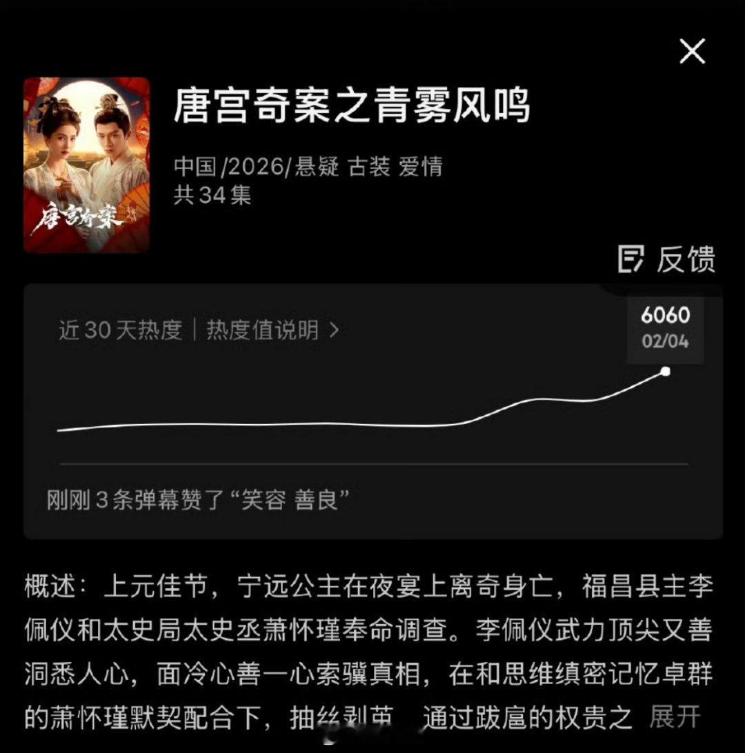 白鹿,王星越《唐宫奇案》明日开播,今晚👖热度已经破6000,这是什么概念