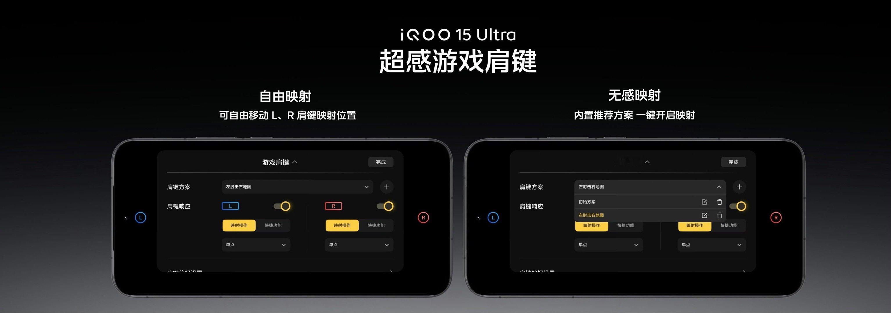 iQOO15 Ultra超感游戏肩键:600Hz超高采样率。超感陀螺仪:500Hz采样率,还可以结合iQOO自研超感疾速算法。超感触控:至高4000Hz瞬时触控采样率,480Hz多指触控采样率