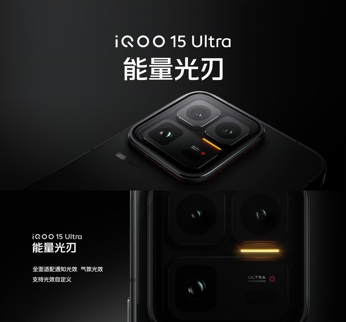 iQOO15 Ultra有「2049」、「2077」两款配色,科幻感六边形蜂巢纹理,透明Deco将内部精密模组有序呈现更具科技感,Deco增加能量光刃,超大R角设计,AG微磨砂后盖+AF镀膜,低温感哑光金属中框;