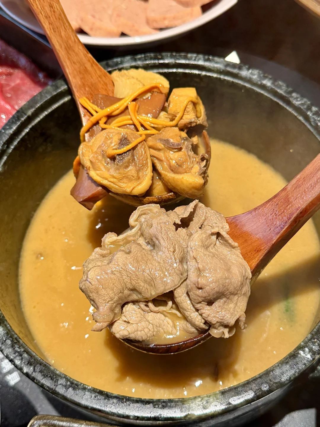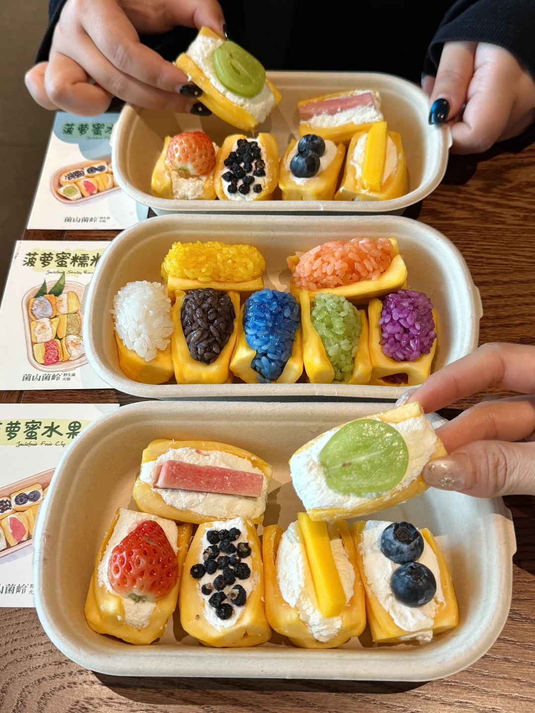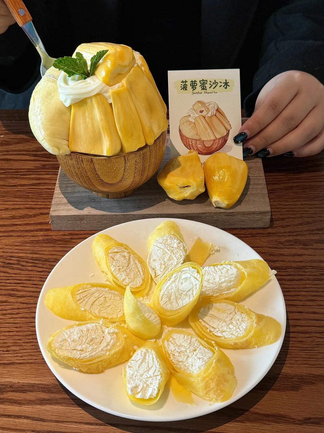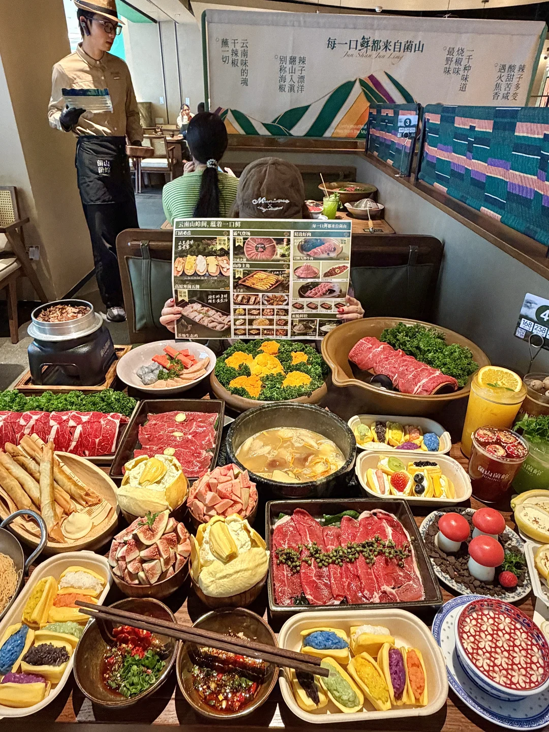 菠萝蜜夹酸奶、柠檬奶酪、菠萝蜜糯米饭……真的好好吃啊😭还有窗花手作酸奶、无花果沙冰、菠萝蜜沙冰都好貌美~ 真的被深圳这家浪漫到了!好适合约会的啊~氛围感很chill!主打的菌汤火锅好好吃🤤我们点的牛肉吃的出品质好好!!一定会带朋友n刷的(菌山菌岭)