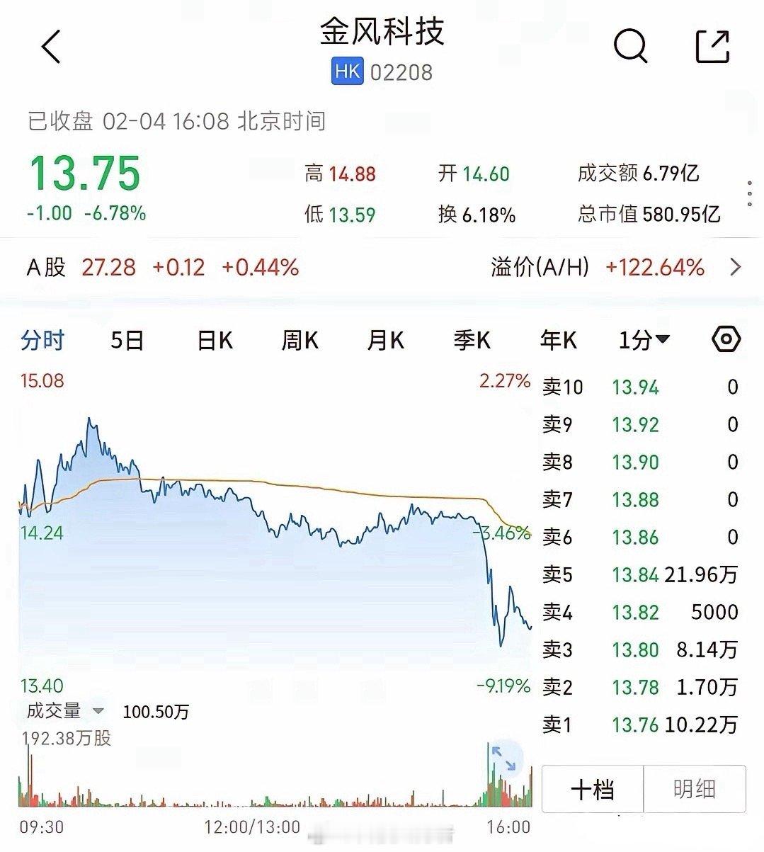 消息爆出时A股已收市,但港股金风科技股价直线下挫,终盘大跌6.78%,恐慌情绪初显。作为曾拉动航天军工板块资金流入的关键标的,其动态极易引发板块联动效应。