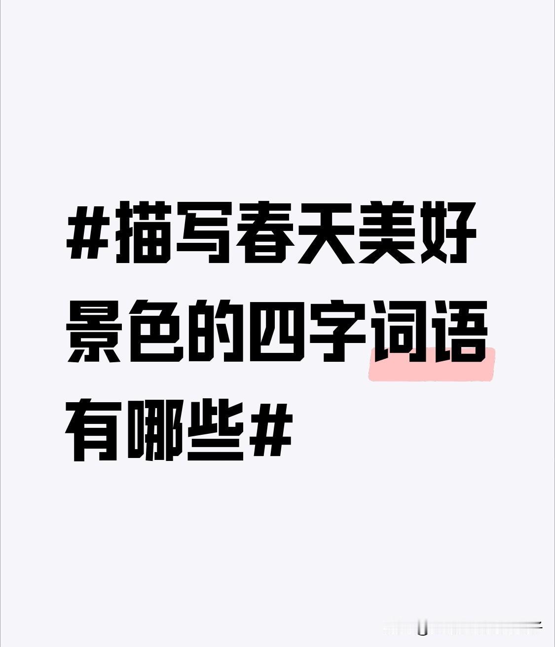 描写春天美好景色的四字词语可太多啦。“春暖花开”就特形象,暖和的春风一吹,百花都开了,到处暖洋洋、香喷喷的。“草长莺飞”描绘出春天里,小草疯长,黄莺欢快飞舞,一幅生机勃勃的画面。“桃红柳绿”也很绝,粉红的桃花娇艳欲滴,翠绿的柳枝随风摇曳,颜色对比强烈,让人一眼就感受到春天的艳丽。还有“花团锦簇”,各种花朵簇拥在一起,像华丽的锦缎,视觉冲击感直接拉满。这些词语把春天的美都浓缩在其中啦。