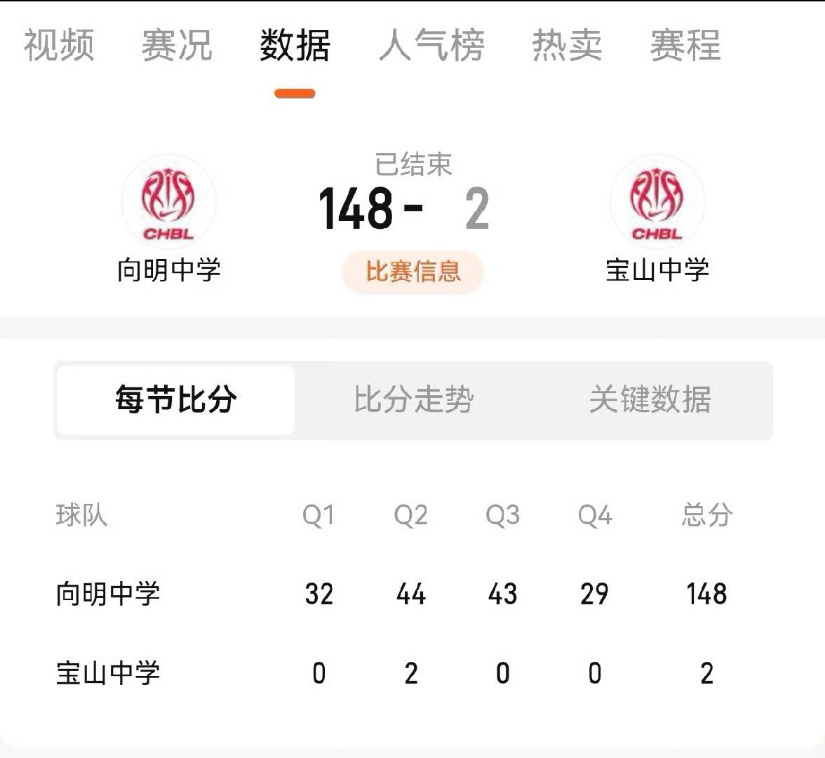 这比分就夸张了吧。。。。。看了一下比赛数据和部分比赛片段,这个宝山中学有在好好打