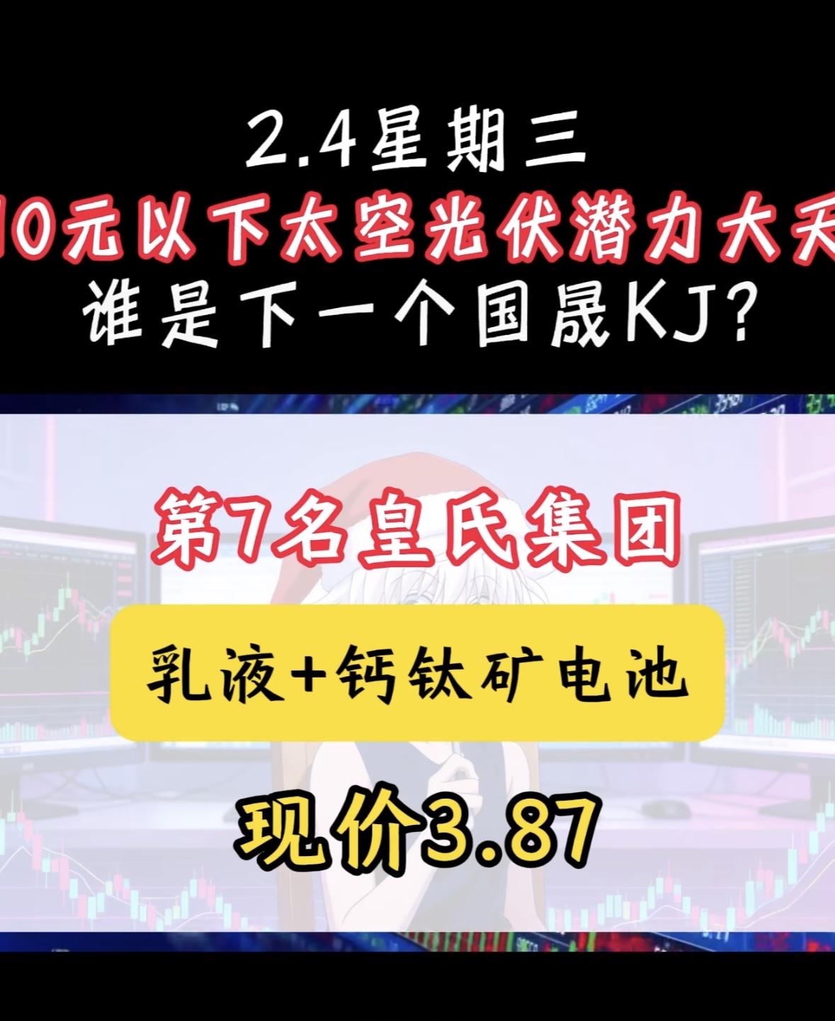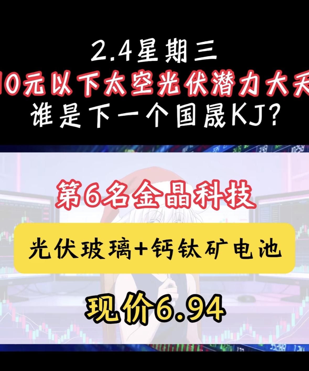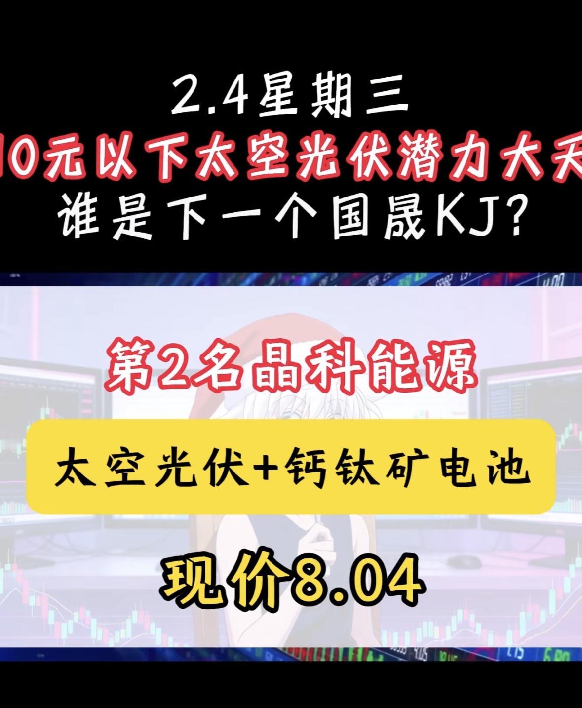 2.4星期四的10元以下潜力光伏潜力股揭晓!下一个国晟KJ是谁? 太空光伏赛道热,钙钛矿技术受瞩目,潜力股引关注。