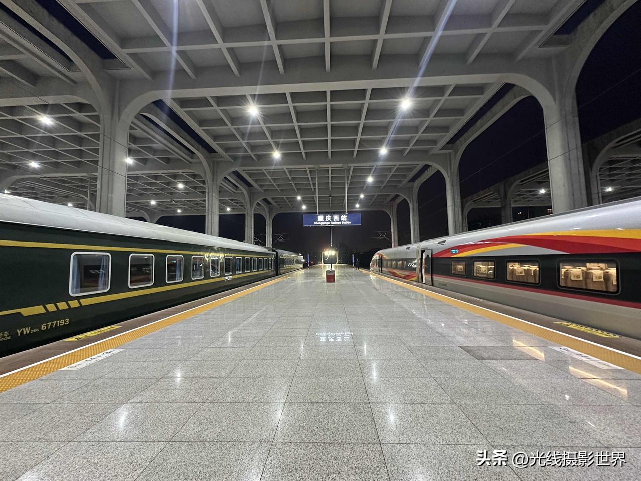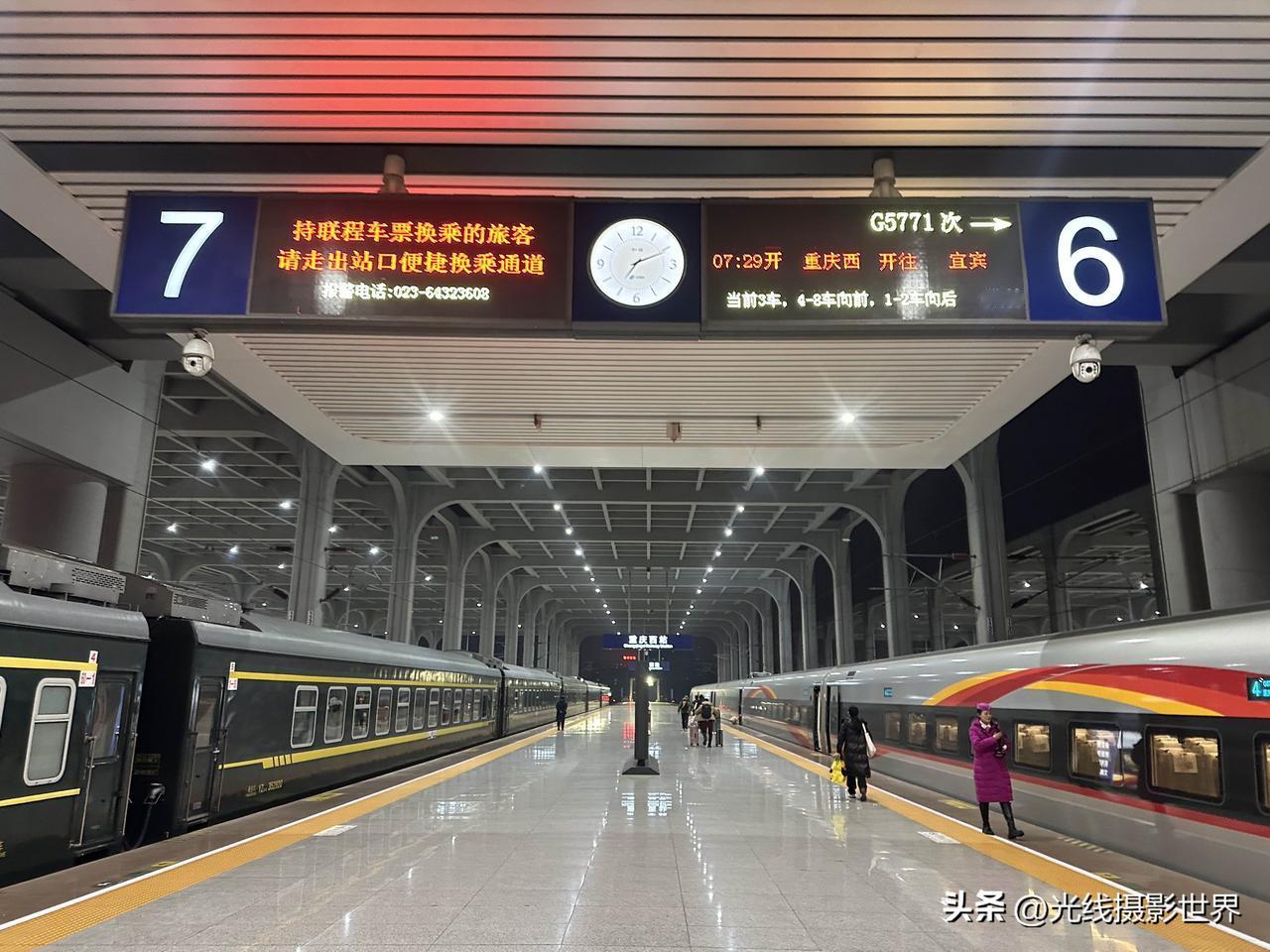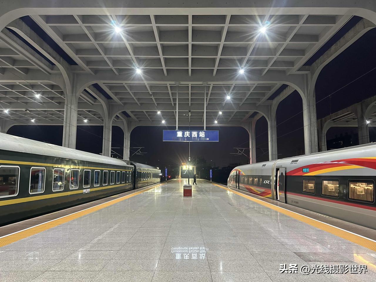 有点意思啊!很曼妙的感觉!2月5日凌晨7点10分,重庆西站,重庆仅存的三趟绿皮火车之老川黔铁路的重庆西至遵义的经典绿皮火车,静静停靠在站台上,安安静静,与渝昆高铁的复兴号高铁列车同框,两者的延伸,太曼妙啦! 中国最先进的高铁列车! 中国公益扶贫绿皮火车! 改天,春节假期期间,我想要去体验一下春运的绿皮火车的年味儿,有没有一起的啊? 摄影畅销书作家曾兰老师,北京大学出版社签约作者曾兰老师,光线摄影学院曾兰老师,乘坐体验和拍摄过很多中国经典老铁路和经典绿皮火车,也是一个资深火车迷啦!