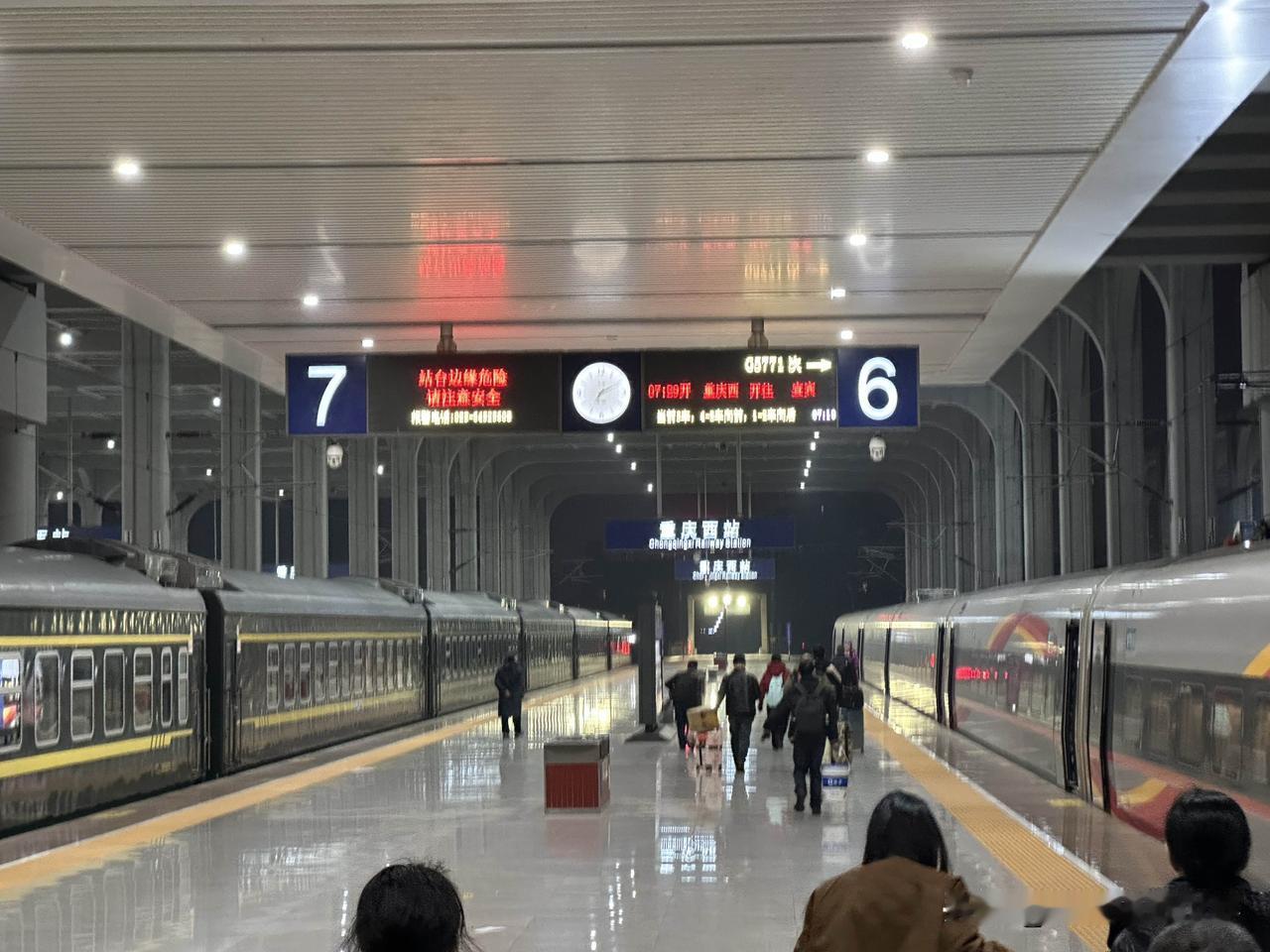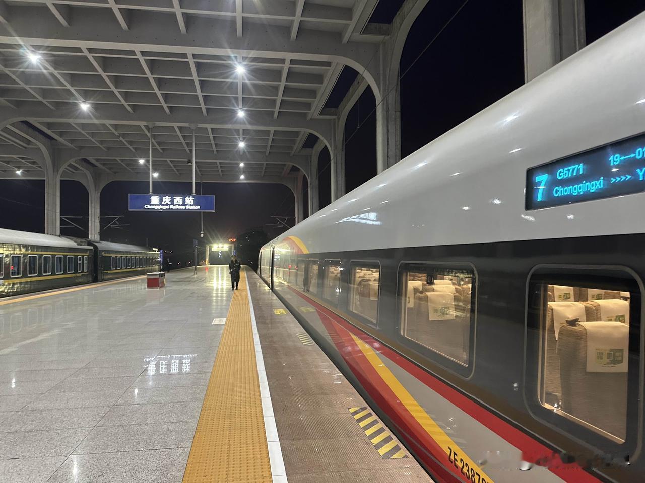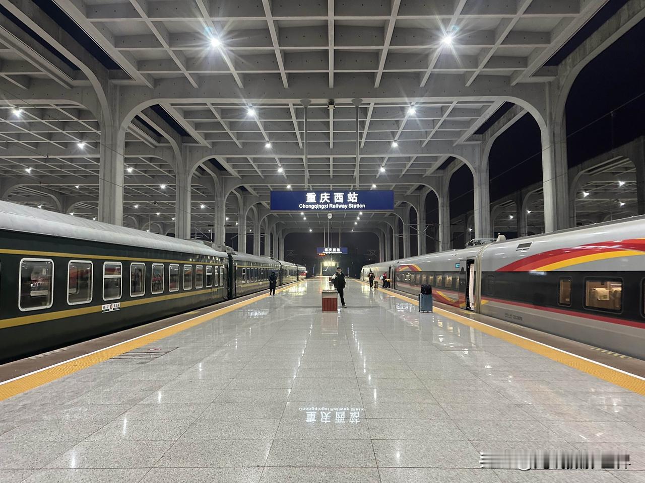 有点意思啊!很曼妙的感觉!2月5日凌晨7点10分,重庆西站,重庆仅存的三趟绿皮火车之老川黔铁路的重庆西至遵义的经典绿皮火车,静静停靠在站台上,安安静静,与渝昆高铁的复兴号高铁列车同框,两者的延伸,太曼妙啦! 中国最先进的高铁列车! 中国公益扶贫绿皮火车! 改天,春节假期期间,我想要去体验一下春运的绿皮火车的年味儿,有没有一起的啊? 摄影畅销书作家曾兰老师,北京大学出版社签约作者曾兰老师,光线摄影学院曾兰老师,乘坐体验和拍摄过很多中国经典老铁路和经典绿皮火车,也是一个资深火车迷啦!