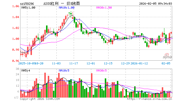 2月5日,A500红利低波ETF(159296)开盘跌0.10%,报1.009元。A500红利低波ETF(159296)重仓股方面,雅戈尔开盘涨0.41%,中国神华跌1.23%,兴业银行涨0.10%,格力电器跌0.33%,中国石油涨0.47%,中国石化涨0.15%,中国海油涨0.97%,交通银行涨0.15%,中国平安跌0.34%,工商银行涨0.14%。