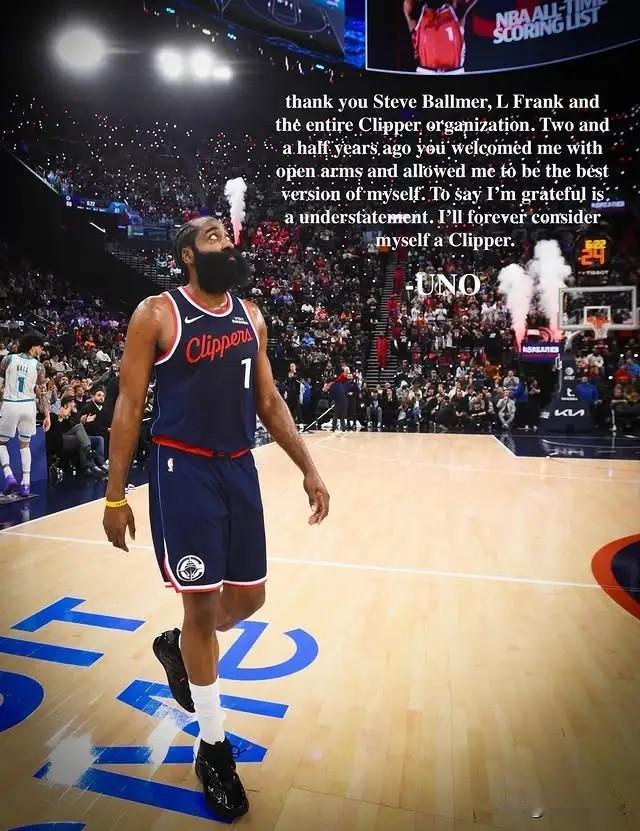 骑士新援哈登真是太懂感恩了!今天哈登特意在社媒上发文,表达了对老东家快船的感激之