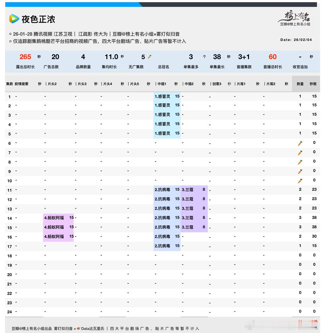 夜色正浓招商当前4品牌,总时长265s🥕×5集,后面又加广了