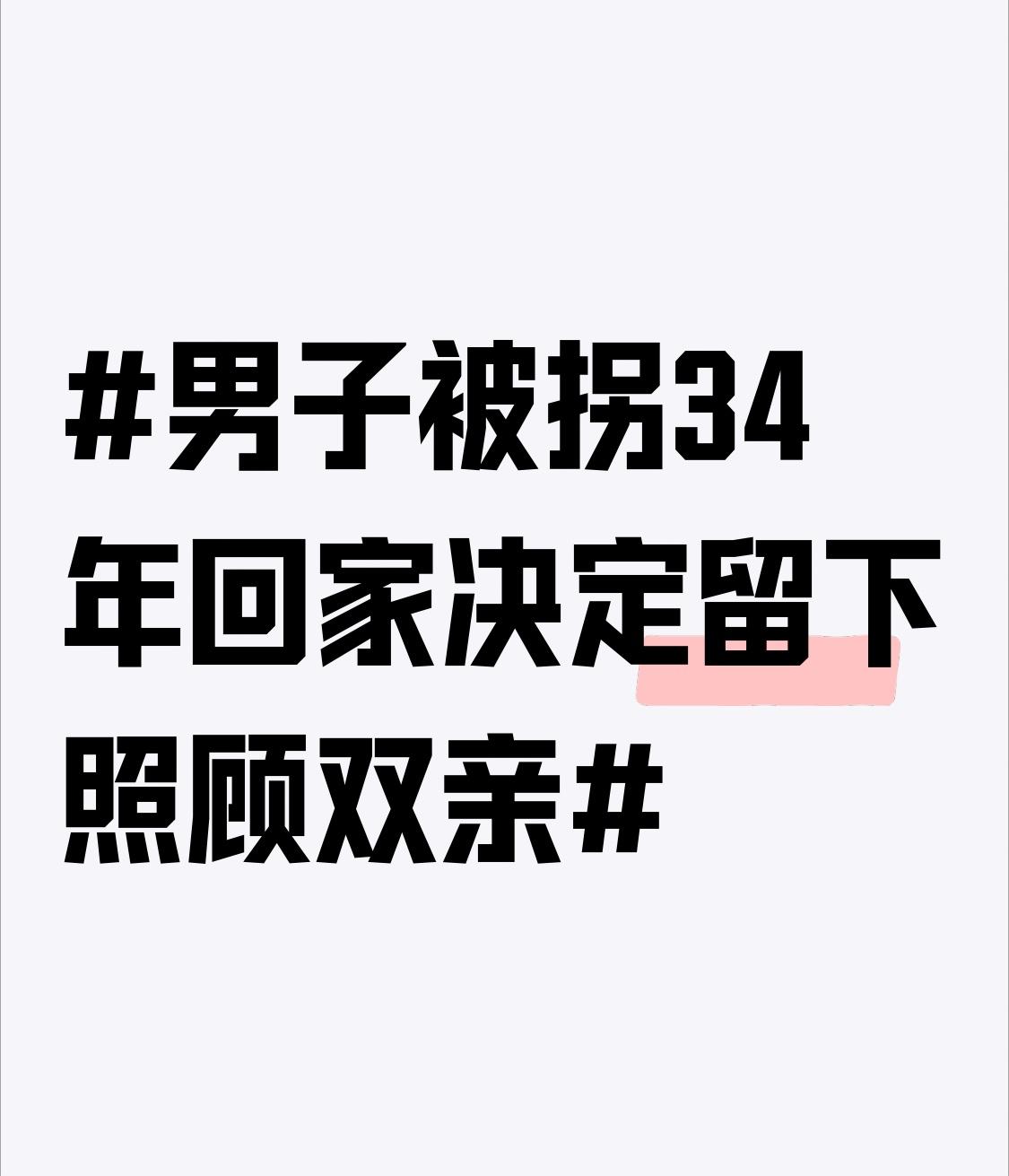 这名男子被拐34年后决定留在亲生父母身边的故事,不仅是一个团圆的结局,更包含了人性的深刻抉择、失序情感的艰难重建,以及对“天下无拐”的强烈期盼。 📜 事件回顾 · 当事人:胡龙,34岁 · 被拐时间:1992年,年仅3个月大时在云南外婆家被拐 · 寻亲历程:父母倾尽所有、辗转多地寻子34年;母亲因常年哭泣致右眼失明。胡龙2021年主动采血录入DNA数据库。 · 团圆时刻:2026年1月28日,DNA比对成功后在贵州毕节老家认亲。 · 关键决定:胡龙计划留在亲生父母身边,照顾年迈且多病的双亲,扛起家庭重担。 💞 情感核心:超越血缘的双重恩情 这个故事最动人的矛盾点在于: 1. 生母的叮嘱与格局 认亲时,胡龙的生母(涂国芳)拉着他的手说:“虽然我们没有养你,是人家(养父母)养育你,你要对他们好。” 这句叮嘱超越了寻回骨肉的私情,体现了对“养育之恩”的感恩和尊重,展现了伟大母爱的另一重维度。 2. 胡龙的抉择与情感需求 胡龙选择留下,是因为在亲生父母身边感受到了“久违的亲切与踏实”,而养父母家“没有让他感受到爱”。他的选择基于对原生情感联结的追寻和对生父母状况的深切共情。 ⚖️ 现实考量:留下背后的具体挑战 胡龙的决定不仅是情感选择,也面临现实考验: · 经济与工作:他坦言若在贵州找不到合适工作,仍需回福建打工。 · 家庭关系:家中两个妹妹多年来承担了照顾父母的责任,胡龙的回归需要新的家庭分工与磨合。 · 对养父母的义务:如何履行对养父母的赡养责任,是未来需要面对的复杂问题。 💎 社会与法律启示 1. 技术的关键作用:此案再次证明,全国打拐DNA数据库是帮助被拐儿童回家的核心技术手段。 2. 严惩犯罪的共识:网友评论中“杀千刀的人贩子”等言论,反映了公众对拐卖犯罪的深恶痛绝。 3. 对买方的法律与道德审视:此案中的“养父母”实为“买家”。社会讨论已超越“养育之恩”,更多从法律和犯罪链条角度进行审视。 ✨ 总结 胡龙的故事始于悲剧,但最终以坚韧的寻找、科技的助力、人性的宽容和个人的勇气,迎来了一个温暖的结局。它像是你之前关注的“大二女生失踪案”的一个反面对照:一个家庭在长夜后迎来了曙光,而另一个家庭仍在黑暗中等待。这些故事共同提醒我们,每一起失踪或被拐案件的背后,都是鲜活的人生与破碎又重聚的家庭。 如果你对全国打拐DNA数据库的运作机制,或其他关于打拐的法律与社会议题有更多兴趣,我可以为你提供进一步的信息。