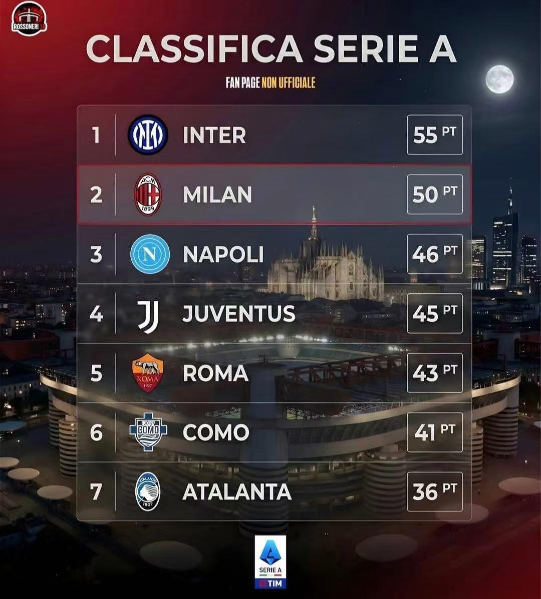 25/26米兰逆袭的难度,不亚于98/99奇迹! 按照意甲20队过往夺冠经验来看,想夺冠最低要拿82分。目前米兰的分数是50分,还剩15轮,剩下的15轮至少要拿到32分,也就是说至少要9胜5平1负,赢9场球。而国际米兰目前已经55分,在考虑胜负关系的情况下,至少要拿到83分才能压制AC米兰。国米目前离83分还差28分,剩下的15场8胜4平3负就可以达到。总体来说,剩下的比赛允许米兰犯错的机会很少,否则国际米兰必须输掉尤文、米兰、罗马这几场强强对话米兰才有机会。