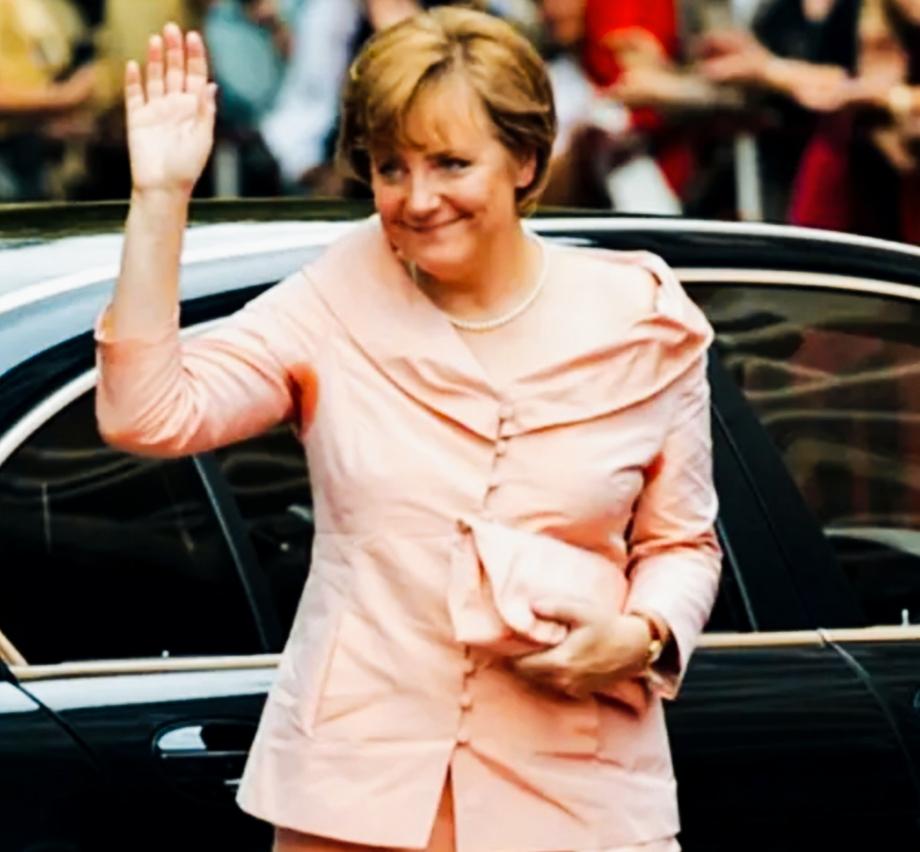 一身粉色裙打扮的默克尔,看上去是不是领导范十足啊? 一身粉色为主色调的衣服,看上去是不是显得更年轻了? 默克尔下车后挥手的姿势,一看就是领导啊!