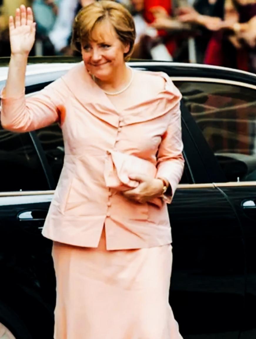 一身粉色裙打扮的默克尔,看上去是不是领导范十足啊? 一身粉色为主色调的衣服,看上