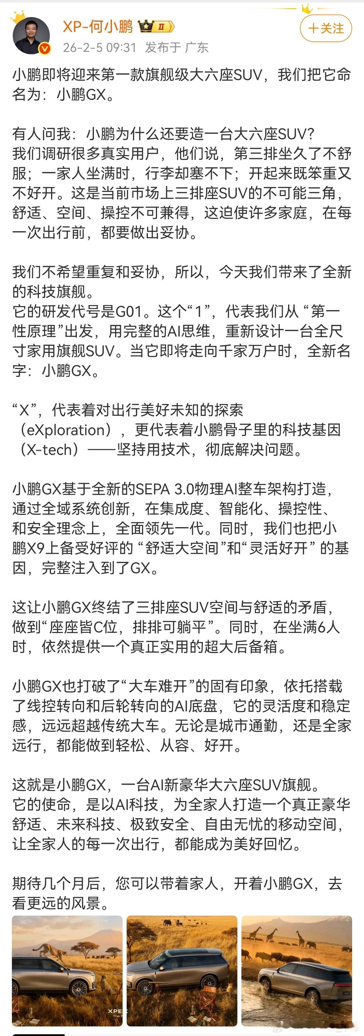 小鹏大6座SUV,型号命名为GX,外观太像揽胜了。之前小鹏G9的命名太早了,